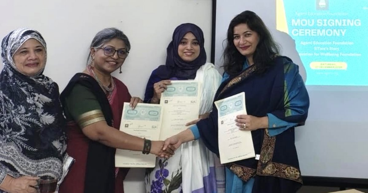 Agami Education Foundation (AEF) has signed a Memorandum of Understanding (MoU) with Australia-based Sitara’s Story to strengthen mental health awareness among teachers of Agami-supported schools. The initiative will be implemented in Bangladesh in partnership with the Innovation for Wellbeing Foundation (IWF).
